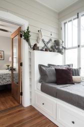 But the greatest gain in stowage by far was in the sunroom. Stacy now has attractive custom-built storage benches at the room’s perimeter and a pair of repurposed freestanding pantries providing all the storage she could want. (With a bench large enough for a twin mattress, the room can double as a bedroom where Stacy can sleep when she has overnight guests.) All told, Krista created an additional 60 square feet of storage space—and she has tips anyone can follow to get even the tiniest house organized.
