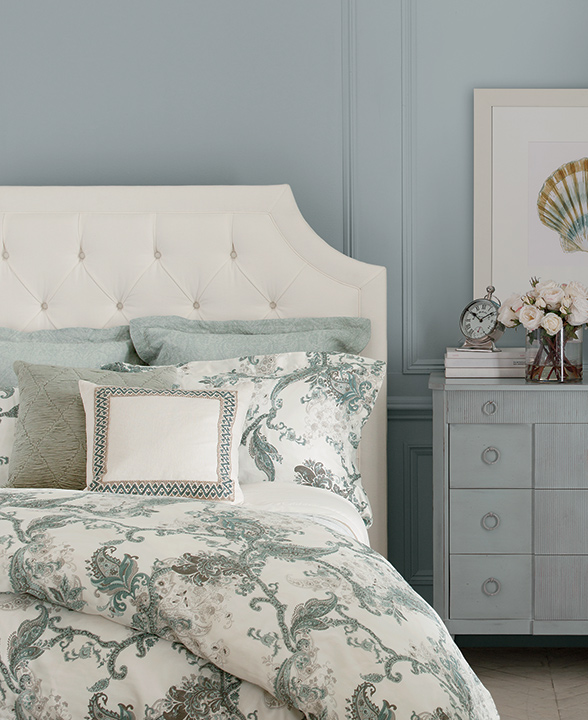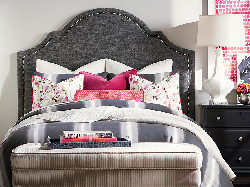 Create a dramatic centerpiece in your master suite with an upholstered headboard.