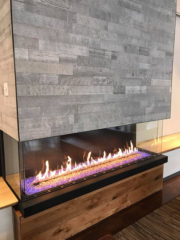 Though often recognized by what Chad Copeland of Victorian Sales refers to as a “straight or linear flame pattern,” fireplace installation and design experts assure that contemporary units are more than minimalist panels of flame and glass. “That’s how they were always shown in design magazines,” Jost says, “and it made a lot of people feel that less-traditional options weren’t for them. They really can be. To me, contemporary relies just as much on the surrounding material as it does the linear shape. The options are endless.”