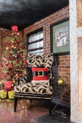 “And there is no way to overdo the tree. I start with big-scale pieces and begin layering with a lot of small-scale decorations, eventually adding lots of lighting. The more I collect, the better it gets.” The Christmas trees are decorated according to the color scheme of the space, brimming with silver reindeer and sparkling, wintery ornaments in one room and decked in colorful hats, orbs and brightly dressed elves in another.