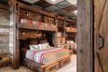 Thinking back to Lake Sherwood, Wendy’s main prerogative was to maximize sleeping space. So Kraft installed eight beds in two rooms — a traditional bedroom and a larger bunkroom with stacked beds framed in faux beams. Mimicking the industrial-chic ceiling, Kraft used corrugated steel, as well as reclaimed wood, to create hidden storage units beneath each bed. Guests have easy access to bedside charging stations, along with personal reading lights and enough shelving for a book and an iPhone. The wallboard in the basement – also reclaimed – was milled smooth, Kraft says, and installed as veneers that, in the bunkroom, conceal a Murphy wall-bed.