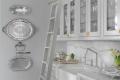 Taking its cues from the past, this new kitchen designed by Mitchell Wall Architecture & Design has every convenience and technological feature one could want. The interior spaces of the home are centered around a double-height living room framed by a tall, textured fireplace on one side and a paneled stair on the other. The kitchen shares the double-sided fireplace and is organized by two islands with a bar on one side and a wall of appliances and storage on the other. Light from the illuminated display cabinets spill onto the textured wood ceiling feature. A butler’s pantry complements the kitchen space and features a rolling library ladder, working pantry and laundry. A cozy alcove next to the fireplace is a perfect place to sit and plan the day. A Le Cornue range and hood with brass fittings are a luxury detail. Book-matched slabs of marble-like material are fitted above the sink. The textured ceiling and brass pendant lights add an additional layer of detail to the space.