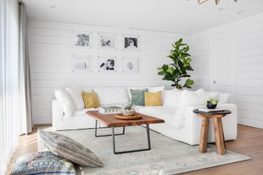 Often used in sheds, barns and rustic buildings, shiplap has found its way into our homes adding rustic charm and subtle texture. This timeless and classic design element is a simple wooden board with a groove cut into the top and the bottom to allow the pieces to fit together snugly. Not just for the farmhouse or rustic look, a shiplap accent wall can add interest to any space.
