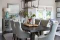 The sunroom is a cozy place for the whole family and easily viewed from the kitchen if the adults are cooking. A bookcase with baskets and storage ottoman help hide away kids toys, especially the youngest child's. “With the home being so open-concept, you can’t just shut the door and hide all the kids' mess so we had to create options to conceal them,” Laura explains. The ottoman is a laminated vinyl in a snakeskin print, making it very kid friendly while still aesthetically pleasing. Laura says the sunroom is a space that is all about the kids, but it still looks grown up. She was able to achieve this balance by working with Fiber-Seal to treat most of the furniture and soft goods in the home making them pretty yet practical. “It allowed us to incorporate elements into the home we otherwise would not have been able to with young kids,” Laura says.