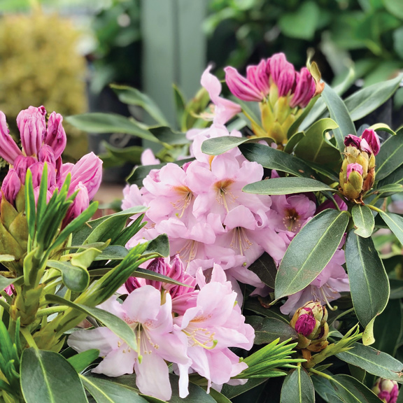 Rhododendron “Lakeview Pink” is filled with clusters of cheery pink blossoms that make quite a statement in the garden from mid- to late May. The glossy, evergreen foliage of this shrub provides a beautiful backdrop year-round. This rhododendron was specifically bred to tolerate pH-neutral soils, so it is a great “no-fuss” option for border plantings or along foundations. Sarah Riley, Bowood Farms.