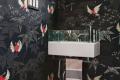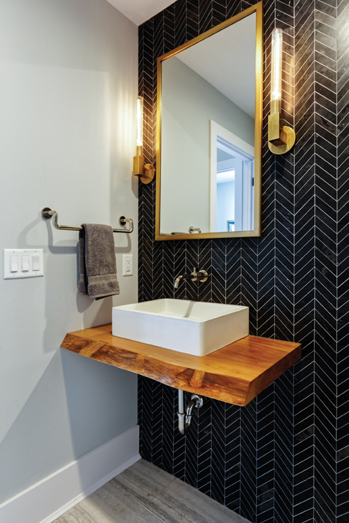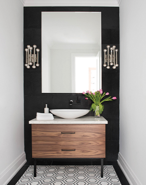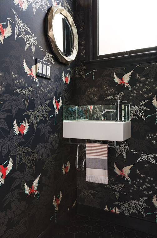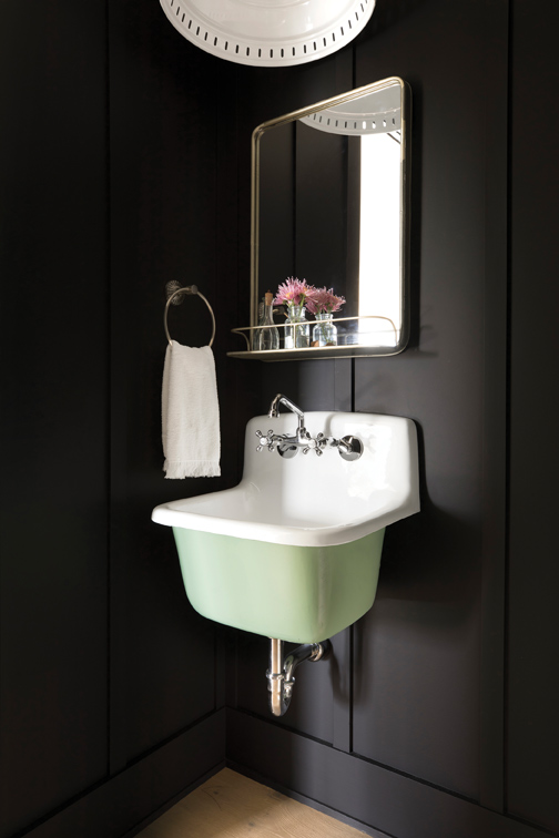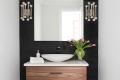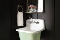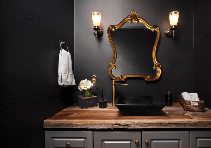 Let your powder room pack a punch with black walls. Whether painted or plastered in a pretty paper, walls in the color black make a bold, dramatic statement in a small space.