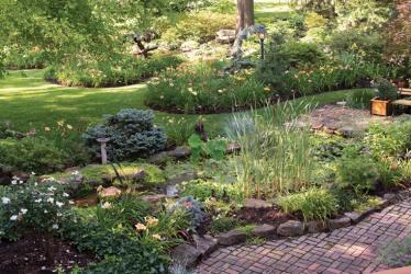 Working from the sides of the lot inward, the beds took shape. The yard was shady enough that Dave and Joan had for years struggled with grass. Learning that hostas grew in the shade, they began to collect those leafy favorites of all shade gardeners.
