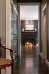 Salinas recommended classic East Coast styling — open, warm, casual and easy to maintain, with “pops of European.”  Capitalizing on the 10-foot ceilings, transoms were added to various windows and doors, and the existing caramel oak floors were extended and feathered into the new spaces then refinished in an “espresso bean” tone. For an authentic coastal feel, the window casings and muntins were painted black and the drapes replaced with organic Overland woven shades.