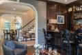 The living room, however, was completely transformed and converted to a luxurious pub-style bar. Centorbi Cabinetry was responsible for the woodwork, including the rich paneling and Salinas’ cleverly designed bar, which features a cutout/dropped workspace. Granite tops the work surfaces; the cabinetry houses a refrigerator and wine cooler, and the original fireplace surround was faux-painted to look like wood.