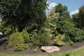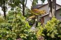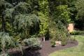 His customer base is continually growing. He recently played host to a busload of Master Gardeners from the Bloomington-Normal area of Illinois. They spent over an hour clambering up and down the hillside asking questions about everything from the bleached-out needles of a variegated pine to the flattened, single-plane branches of a Blue Atlas cedar that he is training to climb up the brick walls of his garage in the same way Europeans have for centuries espaliered apple and pear trees.