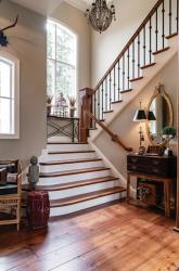 The home furnishings are an eclectic mix of things the couple both love— oriental rugs, Staffordshire dogs, dried hydrangeas, baskets, pine pieces and loving cups. The homeowner inherited special pieces from her parents and grandparents, and many of the furnishings were found on frequent trips to antiques shops all around the country.