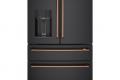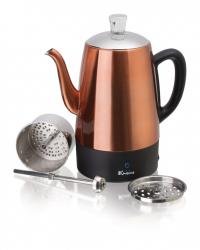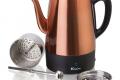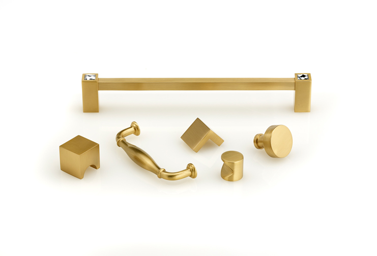 1. Somerset medium pendant in heritage brass, by Hinkley Lighting, available at Metro Lighting. 2. Electric percolator in copper, by Euro Cuisine. 3. Traditional two-handle kitchen faucet pot filler in brushed gold, by Moen, available at Crescent Plumbing Supply, Ferguson, Henry Kitchen & Bath, Immerse, Plumbing Haus and Premier Plumbing Studio. 4. Satin brass hardware, by Creations Collection by Alno, available at Gegg Design & Cabinetry and Locks & Pulls. 5. 2x2 slice toaster in rose gold, by Smeg. 6. Artisan® design series 5 quart tilt-head stand mixer with glass bowl in champagne, by KitchenAid. 7. Café refrigerator in matte black with brushed copper, by GE, available at AUTCOhome, Authorized Appliance and RSI Kitchen & Bath. 8. Weymouth one-handle high arc pulldown kitchen faucet in brushed gold, by Moen, available at Crescent Plumbing Supply, Ferguson, Henry Kitchen & Bath, Immerse, Plumbing Haus and Premier Plumbing Studio. 9. Café double oven in matte white with brushed copper, by GE, available at AUTCOhome, Authorized Appliance and RSI Kitchen & Bath. 10. Johnson 30.25” bar stool in gold, by Gabby Home, available at Forshaw.