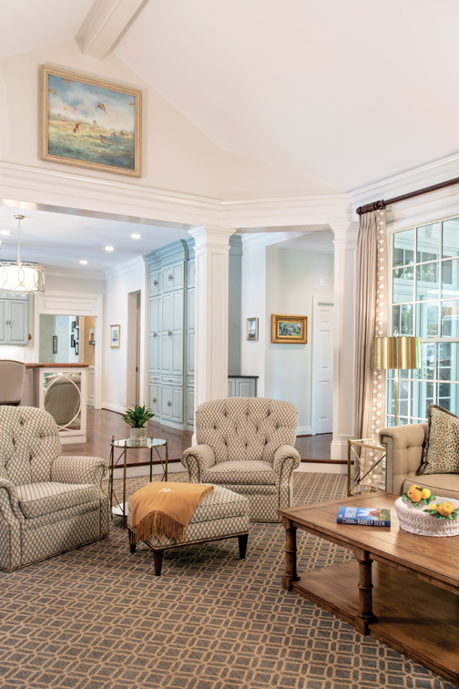 The kitchen was an equally important room for the homeowner to have remodeled to her specifications. Designers at Karr Bick Kitchen & Bath turned a 1980s kitchen with soffits and a segmented island into a colorful, functional space. They expanded the butler’s pantry by taking space from the laundry room.