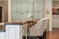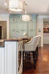 The homeowner found a color similar to Sherwin Williams French Blue, and she worked with Mauser Cabinetry to add a black glaze over it, which made the paint perfect for her kitchen and complemented the other white cabinets. The homeowner fell in love with mahogany wood countertops found at Karr Bick Kitchen & Bath, and paired with black suede granite, the counters had style and functionality. The previous cabinets in the butler’s pantry, which were in great condition, were repainted to the homeowner’s liking.
