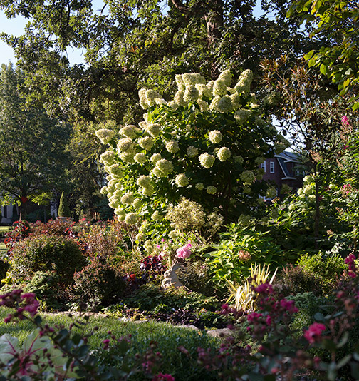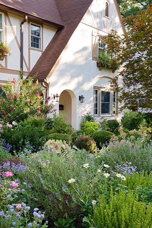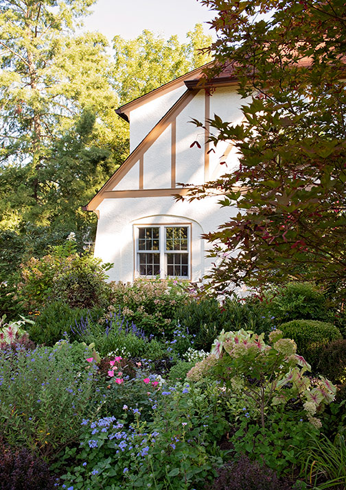 Brenda Dribin and Thomas Jefferson have a lot in common. For over 25 years, Brenda has been devoted to her highly visible garden, bordered on three sides by public streets. She has never disappointed the folks who pass by car, bicycle or on foot. The buoyant, brimming, English Country style of the garden perfectly compliments the English Tudor architecture of her home. Stepping-stone pathways wind their way through beds of flowering trees, shrubs and long-blooming perennials. They curve around the side of the house and lead to the back garden, which also borders a public street. The beauty of the garden is such that the Missouri Botanical Garden recently selected Brenda’s garden to be on its next home garden tour.