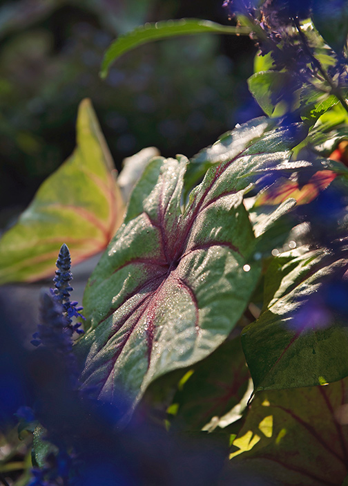 She enjoys her caladiums most in late summer, when all gardens begin to look tired and burnt out from heat. “They just carry a garden when everything else is gone,” she says.