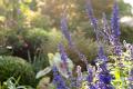 Blue salvias are a mainstay of her garden as are daisies with marguerite daisies first appearing in spring and long blooming "Becky" daisies taking over in summer. She selects the salvias for their long bloom time favoring a mix of perennial and annual varieties including guaranitica, "Victoria Blue" and “Mystic Spires Blue."