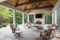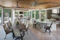 Mechanically retractable screens on the section of the porch closest to the pool magically disappear with the touch of a button to further blend the living space with the open air.