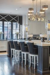 Anna recalls the only direction the homeowner gave this time around was to utilize a black and white color scheme. Working with existing sleek white kitchen cabinets and beautiful dark hardwood floors, the design team was off and running to give the homeowners a design style Joy calls “metropolitan” — classic, yet comfortable, with glamorous touches throughout.