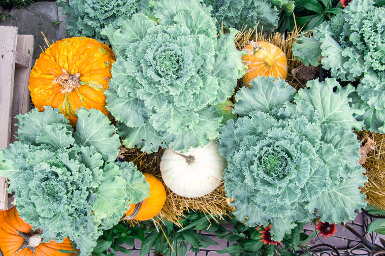 Ornamental cabbage or kale is a showstopper for fall! This is not your every day autumn color item, but it will add those colors you love with a unique texture, perfectly accenting the traditional oranges and yellows of fall. Andria Graeler, Chesterfield Valley Nursery.