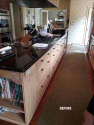 Their kitchen footprint is long and narrow, and the previous design included an island that ran the length of the room. It provided a lot of storage, Mary Ann says, but it also blocked traffic flow. The cooktop was in the island, and a bulky hood created a visual barrier to the opposite side of the room and the breakfast area.