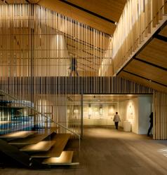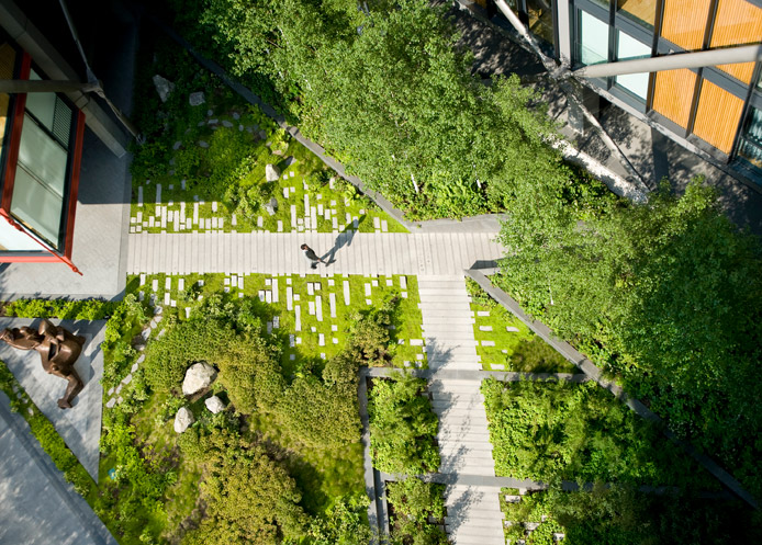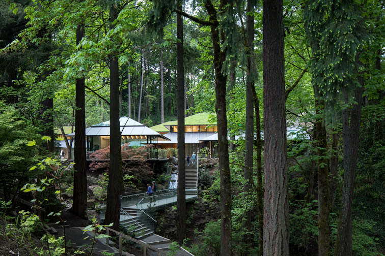 Cultural Crossings, Portland, Oregon | Architect: Kenga Kuma & Associates | Photography courtesy of Kenga Kuma & Associates: The Portland Japanese Garden was an already celebrated landscape more than five decades old, but an expansion by Kenga Kuma & Associates employed traditional Japanese building techniques with contemporary materials to make the new and old portions of the garden blend together seamlessly. The project aimed to further the garden’s purpose of intercultural exchange and dynamic learning; the existing garden was already renowned as one of the most authentic Japanese gardens outside of Japan, but the addition adheres more closely with modern and contemporary Japanese design practices and aesthetics. Through using a more modern approach, Cultural Crossings became more than a preservation of Japanese gardening traditions in the Portland area and embraced environmental developments while showcasing a cultural union. One way they exemplified this marriage of old and new was through an authentic medieval castle wall on the west edge of the plaza built by a 15th-generation Japanese stonemason using only local materials, such as Eastern Oregon Baker Blue granite. The gardens are now a shining example not of how our cultures differ, but how we can learn and grow from the people around us.