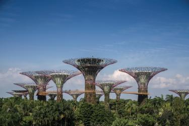 Gardens by the Bay, Marina Bay, Singapore | Architect: Grant Associates | Photography by Darren Soh: You can experience the splendor of nature both indoors and out in the Gardens by the Bay in Singapore. Inspired by the orchid flower, the national flower of Singapore, the gardens’ design follows the exotic beauty and physiology of the orchid with its appearance and energy management, especially water and waste. Designed by Grant Associates in 2006, the Bay South Garden contains eye-catching attractions, starting with Dragonfly Lake where most tourists enter on the 440-meter boardwalk. To spot real dragonflies, use binoculars on the walk’s northern end. Next comes the Heritage Gardens, which represent Singapore’s three main enthic groups (Chinese, Malay and Indian) as well as the country’s colonial heritage through the spice trade. Perhaps the most iconic architectural aspect of the Bay South Gardens, are the Supertrees. Each stand 25 to 50 meters tall and, aside from their striking appearance, they also provide shade for this section of the gardens and house numerous plant species within their trunks. A walk on the OCBC Skyway, which connects the treetops, will give visitors a breathtaking view of the gardens and the surrounding city.