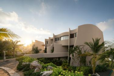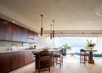 Punta Majahua,Troncones, Mexico: Photography courtesy of Zozaya Arquitectos | Nestled on the coast of the Mexican village Troncones is beachside apartment complex, Punta Majahua. Created by Zozaya Architectos to mimic the curvy beachfront and sloping morphology of the surrounding area, the complex is made of six buildings containing 39 individual residences in total. The curved masonry walls not only take on the fluidity and relaxing nature of waves, but they also provide better views of the coastline by eliminating right angles according to Daniel Zozaya, director of the architecture firm. The masonry walls were made thick to help control the heat of the area. While the angles and design of the buildings are new and striking, the architects strived to use only local materials rooted in tradition to help the apartments blend in with other developments. The interiors were treated with equal importance, featuring embedded river stones in the flooring, local parota wood and bamboo for the cabinetry, ivory-colored quartz for kitchen countertops and traditional thatched roofs on the exterior to create shaded havens for residents. Punta Majahua is a beautiful and sensible addition to the serene coastline.