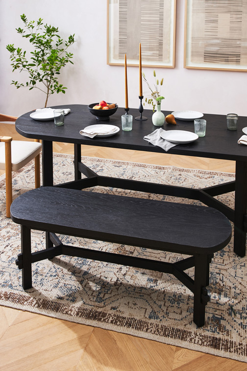 In my opinion, benches are on trend currently because they pair well with the farmhouse/rustic look trending right now. They are also great space savers and can be less expensive than two or three dining chairs. But I don't think they are good for personal space or comfort (no back support on some), and they also can be hard to get out of if you are sitting in the middle. Shannon Urnes, Forshaw of St. Louis.