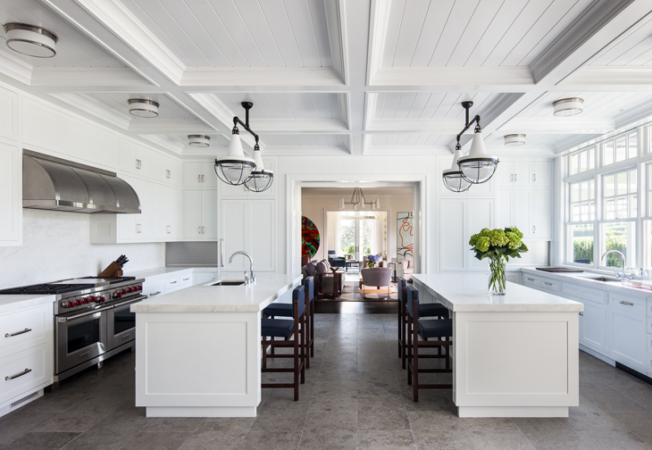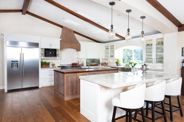 Separate Functions, Separate Spaces, By Michelle Tumlin Design and architect John Hathaway, Vanguard Studio. One kitchen trend that remains constant is the need for a functional space, and a double-island kitchen is a great way to improve this. One advantage is more counter space to work on and a second is to maximize traffic flow. A creative design provides separate functions for separate spaces. Photography by Tre Dunham.