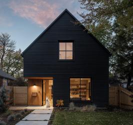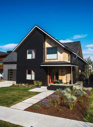 The artfully designed Boise Passive House is tucked in a mature neighborhood surrounded by 1930s bungalows. Its classic profile gleams from days of old while brining simplicity and design clarity to the facade. The black exterior bridges the gap between eras with the dark color selection, ushering it in to the current decade.