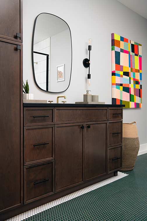 “I enjoy how our family’s personality is evident in our choices,” says Emily. “It took a team effort to get it right, and we are so happy with the result. You can usually find us having a movie night in the basement under our giant blanket or hosting family and friends spread out in all the fun spaces throughout our home.” See stlouishomesmag.com for resources and additional photos.