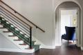 In the foyer, a green Roger Oats herringbone wool runner imported from London creates an exciting first moment that welcomes you into the home and sets the tone for the design to come. “The statement is clear,” says Sara. “Color is at home here, and the conversation continues as you head into the living room, where a showpiece striped rug with a kaleidoscope of colors generates a major impact in the sitting area.”