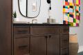“With three children in grade school, family is very much the center of this home,” says Sara. “So, I focused on identifying choices to establish a core design that would allow the homeowners to curate and add additional accessories and art over time that were meaningful to them as a family. As a result, the children’s artwork is embraced throughout the home alongside professional pieces.”