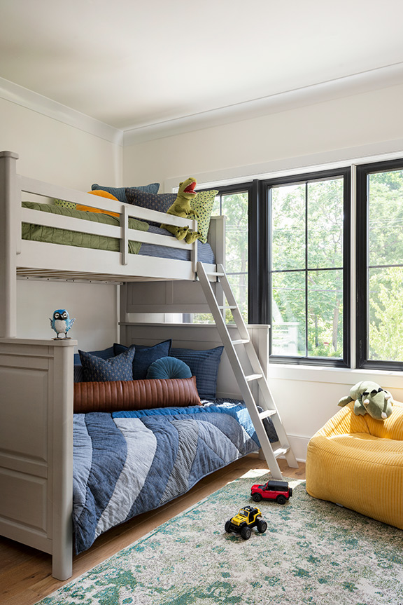 The decision has turned out well for the family, which includes two young children. Their first home, located in Creve Coeur, wasn’t ideal, however. Although large, it lacked character. “Everything in that house was so spread out, we joked we could never find our little guy,” Julie laughs, referring to their son. “In Chicago we lived in a three-bedroom condo downtown, so we were very close to each other in the physical space. We missed having that closeness.” To help add some personality to the home, the couple called upon a longtime friend, designer Kevin Grace, to “zhuzh it up.”