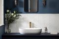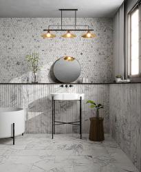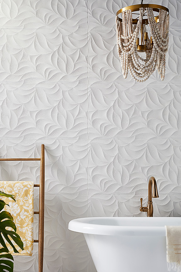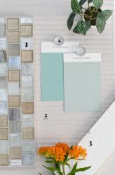 one: Tommy Bahama in silverade, by Lunada Bay. two: Marazzi in off white, by Virginia Tile. three: Oslo in white, by Virginia Tile. four: Penny tile in silverstone, by Virginia Tile.