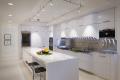 The kitchen design was clean and contemporary and the limitations of the ceiling slab gave us very few options for lighting that would enhance the overall design of the space and keep with the clean and contemporary look; as well as adding the much-needed lighting to that space. The track lighting selected is sleek, minimal and provides the bright lights that we were looking for.