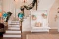By Blue Sky Environments Interior Décor. For this stunning waterfront home, Christmas decorating is inspired by a coastal palette of aqua, gold and silver. Shell and evergreen garlands woven together with splashes of natural sea accents add just the right touch of seasonal splendor. Mercury glass ball wreaths accented with sea fans and seahorse ornaments are hung from the nautical hooks of a stunning custom piece made from a reclaimed church pew. Photography by Nicole Pereira.