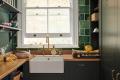 The homeowners selected deVOL’s Shaker cabinetry in the pantry with handcrafted Emerald Green London Tiles, an oak countertop, Bella Brass cabinet fittings, a ceramic farmhouse sink and aged brass Ionian tap. It's a place to store food, of course, but the little sink makes it a perfect spot for some messy jobs you'd prefer to keep out of the kitchen! It's a really practical room and a clever use of the space.
