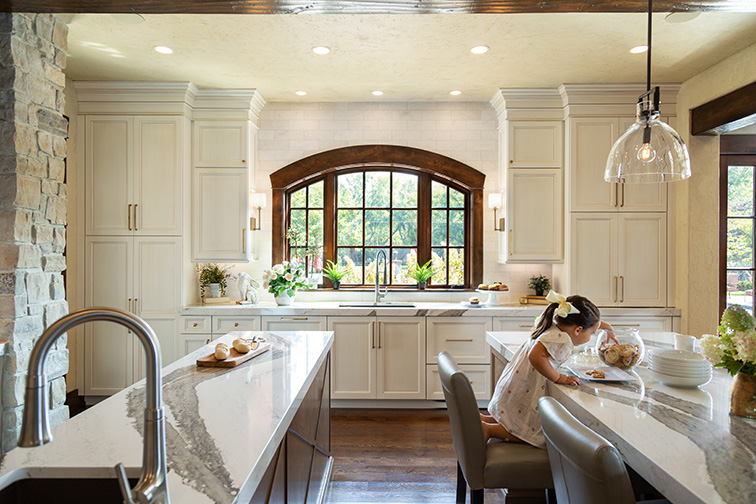 Flow and functionality were top of the list for a young family embarking on a kitchen renovation. Anne Marie Boedges, president and designer at Anne Marie Design Studio, joined forces with the couple shortly after they took ownership of the home. The goal was to make the kitchen reflective of their personalities while keeping the design functional, warm and tasteful. “The only thing they didn’t want was a white-and-gray kitchen,” Boedges says.