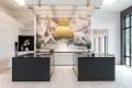 This stunning kitchen designed by Tegethoff Homes and Srote + Co Architects flows seamlessly into the rest of the home. The space is loaded with WOW features that stun guests every time they visit. The homeowners worked closely with the architect, designer and builder to bring the extraordinary vision to life. A custom scrubbable wallpaper mural from Italy was custom framed by the homebuilder’s exceptional in-house carpentry team. The cabinetry is all touch latch with soft close and minimal reveals. Other notable features include hidden refrigerator/freezer, refrigerator drawers, an induction cooktop that allows cookware to be placed anywhere on the glass with no “zone” burners, a custom-designed brass hood and custom ceiling cloud with up-and-down lighting. Th kitchen also has many unique electrical features including a backlit quartzite bar cabinet with custom inset glass door that can be set to any color, flush inset LED tape light in the soffit and RGBW cove lighting, built-in charging drawers and flush inset outlets in the countertop. It is truly a one-of-a-kind space.