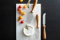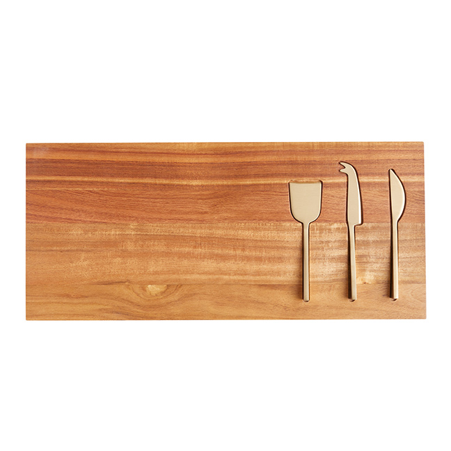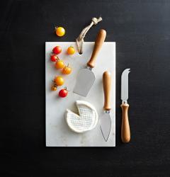 Octavia small serving board with cheese knives, available at Crate & Barrel.