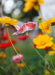 There is a cozy, cottage feel to the pathways and plantings that seems right out of an English storybook. Bright flowers overflow charming beds and mingle in joyful exuberance with a wide variety of garden vegetables. A mound of orange and gold nasturtiums cuddles up to the spear-like leaves of crinkled, gray-green Tuscan kale. Red and gold butterfly weed snuggles with the neon-bright stems and forest green leaves of rainbow chard. Adding to the country charm, arbors, trellises and tripods constructed from white birch poles (purchased at Greenscape Gardens) add structure to the landscape and support everything from the saucer-like, blue blossoms of vining clematis to the tiny tendrils of climbing peas. Creeping thyme meanders over pathways. “It can get pretty wild, but I like it,” says Lauren. “There is always something in bloom and it changes every three weeks.”