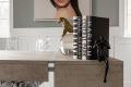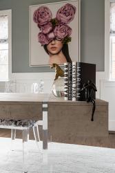 When asked about her inspiration for the suspended shelving system, Tina smiles. “My client wants to get out of the box,” Tina says, referring to bland, ho-hum interiors. “She just keeps pushing to do something different and unique.” Tina’s remark can be applied to her entire body of work with the homeowner over the past four years, as the home’s design style, finishes and furnishings have evolved. “We’ve slowly moved through different rooms to make them more of her taste and to reflect who she is,” Tina explains. “Mixing industrial with modern, adding warmth, yet leaning a bit more contemporary, and working with all the great artwork she has. She is concerned with every detail in her house, and part of my job is to give her a timeless look but one that is very up to date, so that in 10 years, she will still love it.”