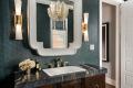 In the adjoining butler’s pantry, the York Wallcoverings paper was selected to complement artwork with gold gilding. A spherical Visual Comfort pendant hangs above the pantry sink, where a Hydrotap by Zip Water system provides instant boiling water, filtered sparkling water and chilled water, all out of the same tap. “It is one of my favorite things,” says the homeowner. “I drink even more hot tea because the boiling water is instant out of this tap.”