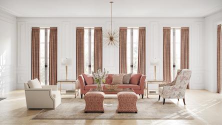 “The soft Pantone color Peach Fuzz offers a fresh alternative to the traditional neutrals. When used in bedrooms and bathrooms it provides a calming and flattering backdrop. It is also the perfect color for a girl's room as an alternative to the traditional pink. As an accent color, Peach Fuzz pairs beautifully both with softer neutral and camel tones, as well as the high contrast black and white. Mix it in subtly with throw pillows, or dramatically with lacquered furniture, or just go ahead and paint your walls!” Jenny Rapp, JCR Design Group.