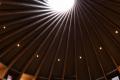 As the slope changes, so does the library’s ceiling. In some sections, the low ceilings allow for smaller hidden rooms for children. Deep within the library is a hall meant for storytelling - complete with stepped seats and built-in bookshelves. Most notable is the hall’s ceiling where thin vertical beams arrange themselves to support their neighbor, building up until they meet to form a circle. With the added support of the 40mm-thick vertical bookshelf frames, the unique design choice represents a “chain of reciprocal support” where “a social space arises that cannot be created by strong individuals alone.” The circle of light in the center symbolizes the agricultural community of Kurkku Fields and frames an earth covered in clouds.
