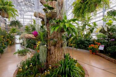 During the cold winter months, the Orchid Show transforms the Emerson Conservatory into a beautiful display of the Garden’s extensive tropical orchid collection. This collection boasts over 5,000 individual plants and 700 unique species, of which nearly one in ten are threatened or endangered.