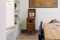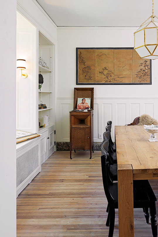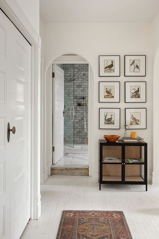 Britt designed the kitchen—the family’s hub—to have large display shelves to showcase art and dishware. In addition to the original butler’s pantry, they converted an old bathroom to add storage space. “It may not seem like the most practical for most people, but as a cooking-oriented family it is extremely functional and perfect for our everyday routine,” she says. She and her daughters create many of the items in the pantry, including herbs and teas dried from their garden.