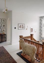 Britt loves auctions and estate sales, and bid on a taxidermied sheep, now on display in the stairway landing, at an auction near their home. “I got outbid on all of the practical things that I set out to get and only came home with the sheep,” she says with a sheepish grin.